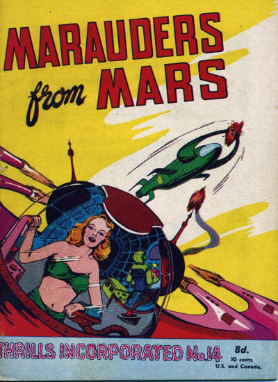 What a curious thread unraveled from reading the scanned issue of Telepath #1 on eFanzines this weekend. The fanzine, originally published by Arthur Haddon in Dec 1951, provided some tidbits of information about Australia’s first (if short-lived) SF pulp, Thrills Incorporated. This pulp was created by Stanley Horowitz’ Transport Publications following the the success of the weird mystery pulp, Scientific Thriller which appeared in 1948. Thrills Incorporated appeared in March 1950 and lasted for a total of 23 issues, ending in June 1952.